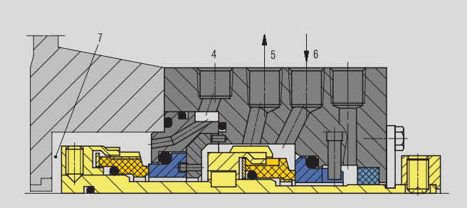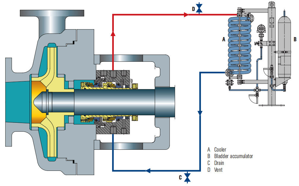 Flödeshastigheten för spolvätskan måste vara tillräcklig för att avlägsna värme från den mekaniska tätningskammaren.